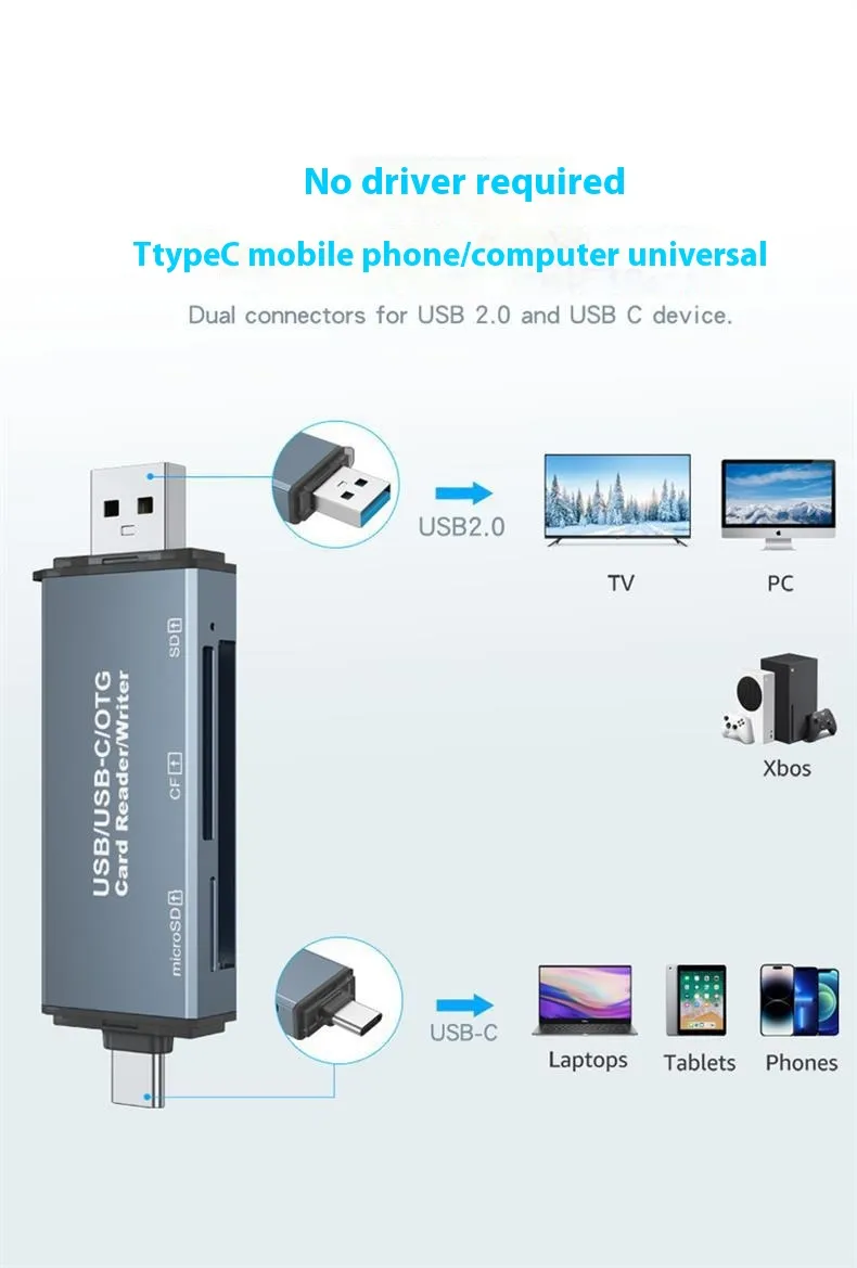 Upgrade your data transfer experience with the CF Card Reader SD Card USB Three-in-One—your ultimate solution for hassle-free and reliable file management.