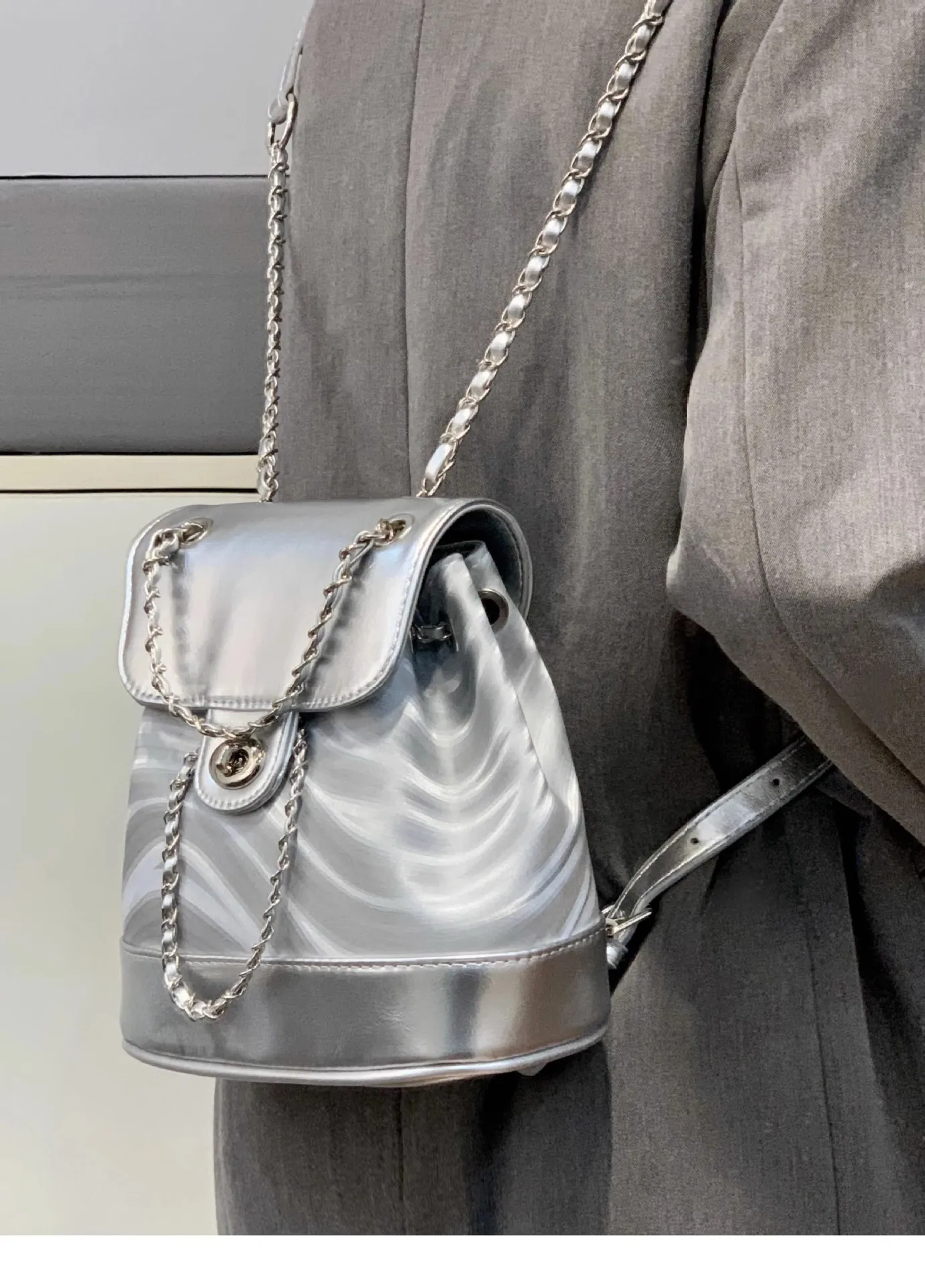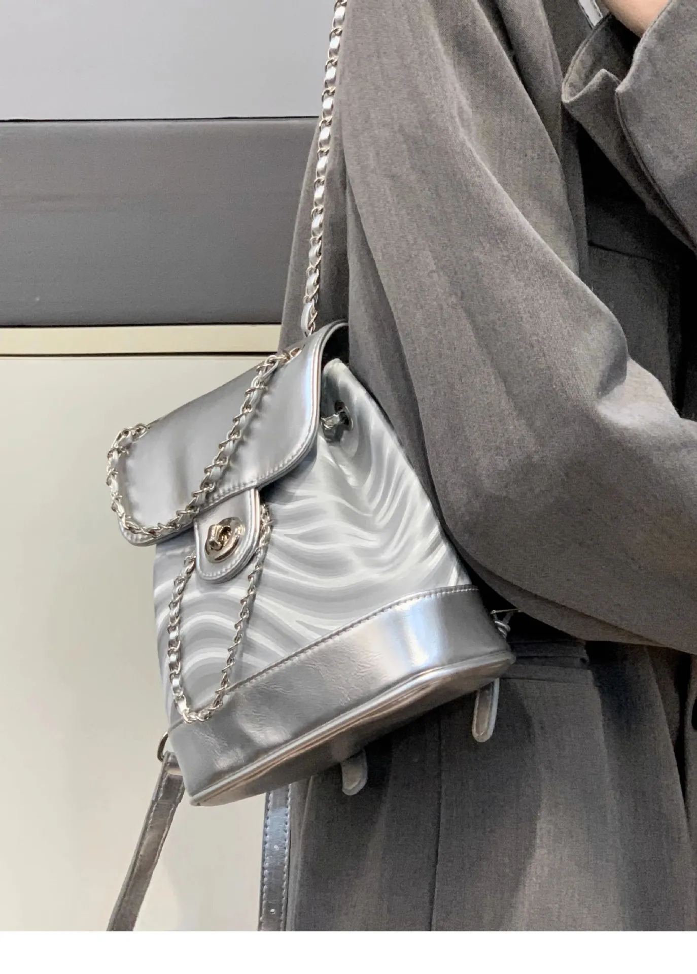 Chain Backpack Women's Water Ripple Fashion Travel Backpack Bags