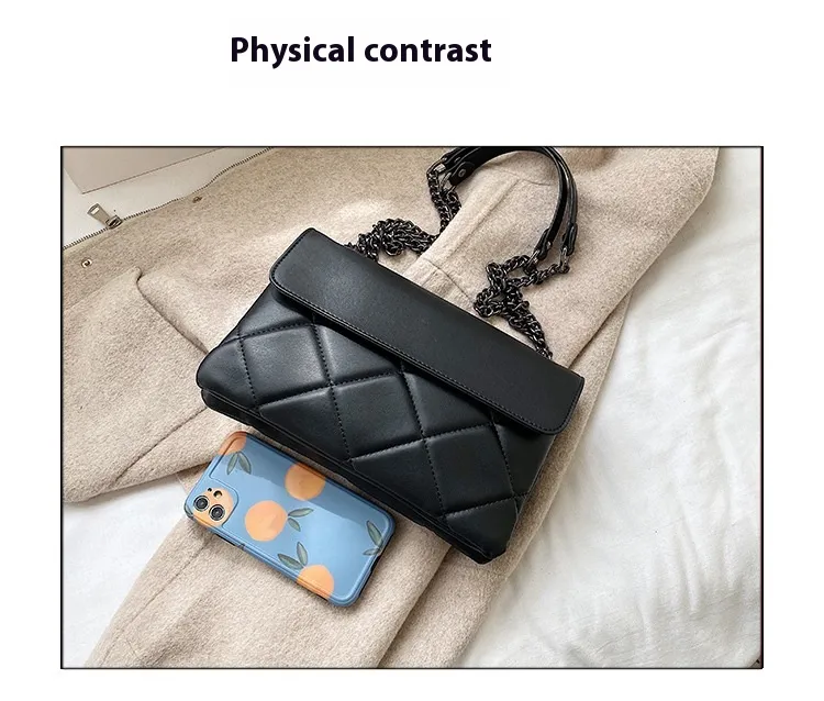 The Chain Underarm Simple All-match New Popular Messenger Bag is the epitome of sophisticated minimalism. Designed with a stylish rhombus pattern and chain detailing, this bag effortlessly blends elegance with functionality. Whether you're heading to the office, enjoying a night out, or running errands, this bag’s simple yet chic design makes it the perfect accessory for any occasion. Its versatile style complements a wide range of outfits, from casual to formal, making it a must-have for every fashion-forward woman.