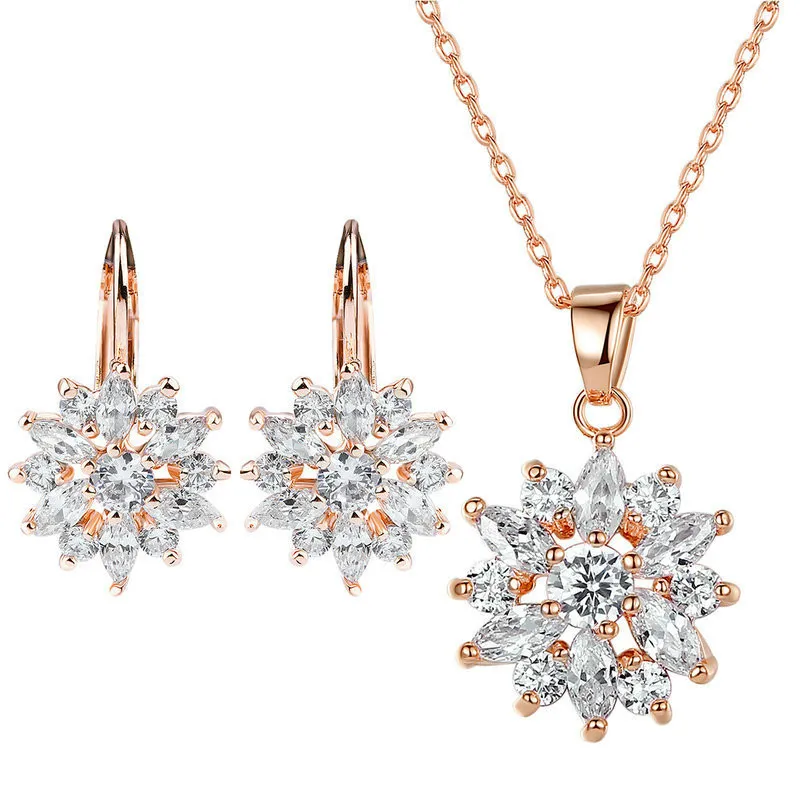 The timeless combination of floral motifs and zircon stones makes these earrings suitable for both casual and formal occasions, ensuring they pair effortlessly with any outfit.