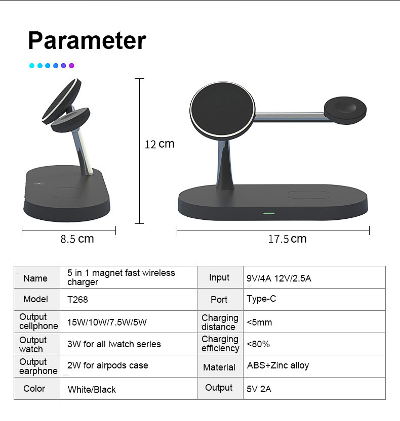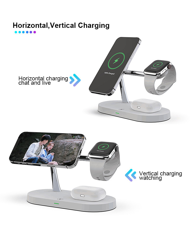 1.ã€5 in 1 Magnetic Wireless Charger】- The Magnetic wireless charger can charge iPhone, apple watch, and AirPods.