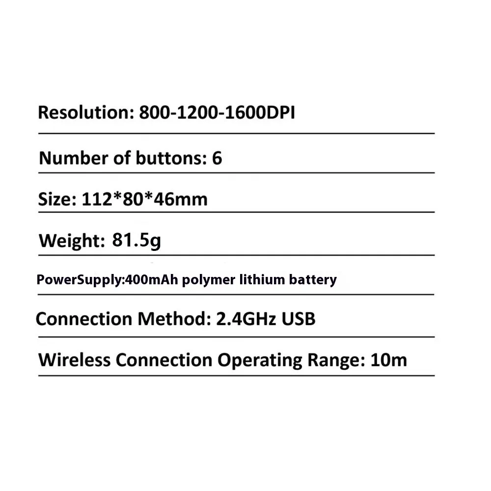 Packing list: White box*1, Mouse*1, Charging cable*1, English Manual*1