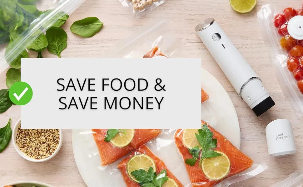 - 💰 REDUCE WASTE AND SAVE MONEY: Chef Preserve keeps FOOD FRESH 5 TIMES LONGER than non-vacuum storage methods. Never worry about spoilage ever again.