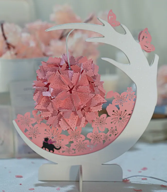 The Cherry Blossom Season Small Night Light is a beautiful blend of nature-inspired artistry and modern lighting technology. Featuring an intricate paper sculpture design of a cherry tree in full bloom, this night light captures the delicate beauty of cherry blossoms in a soft, glowing form. Perfect for adding a touch of ancient style and creative charm to any room, this night light serves as both a functional lamp and an artistic decoration.