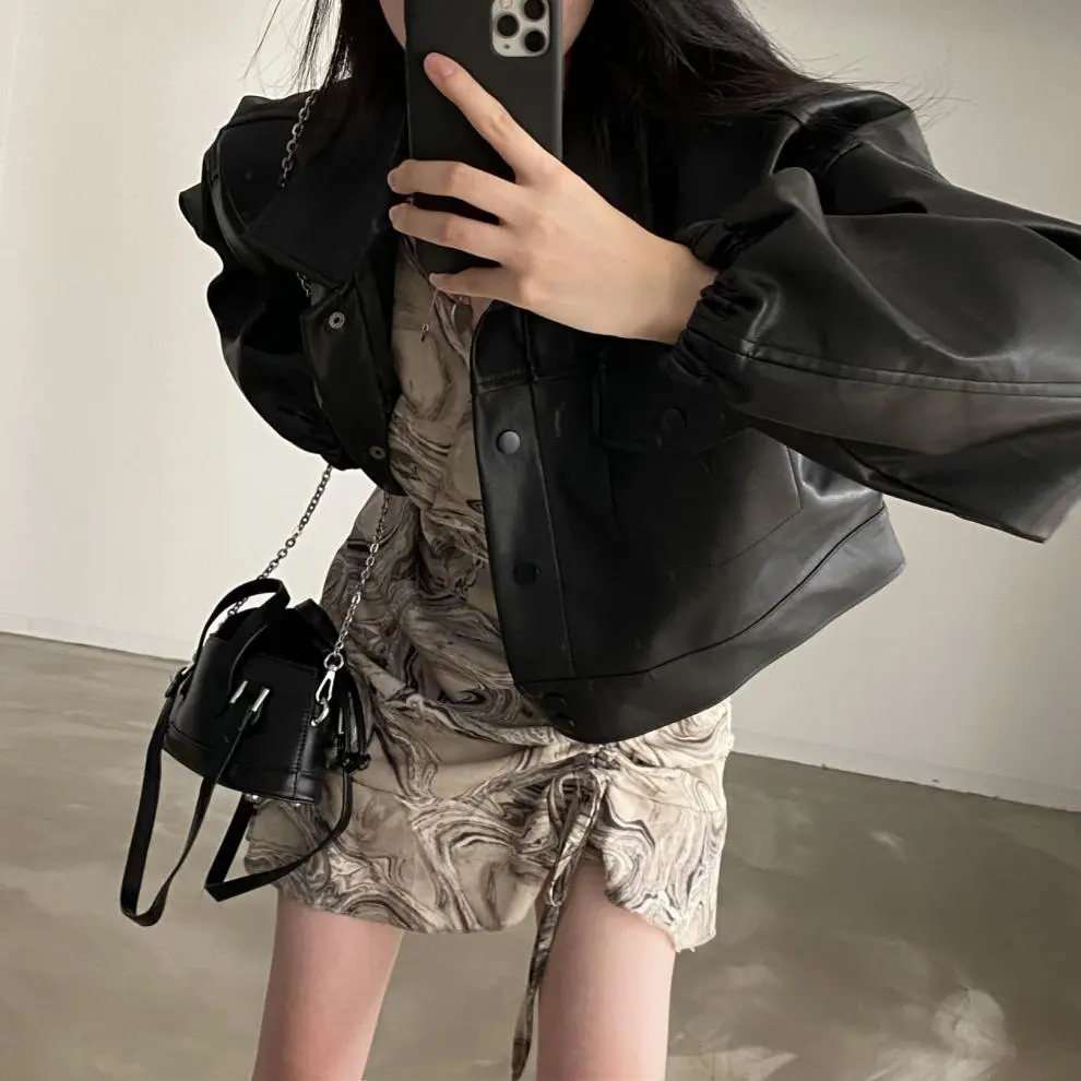 Elevate your style with the Chic Lapel Double Pocket Leather Top Leather Coat. This luxurious and fashionable coat is designed to make a bold statement while providing both comfort and functionality. Whether you're heading to a night out, a casual gathering, or simply want to add a touch of sophistication to your daily wardrobe, this leather coat is the perfect choice.