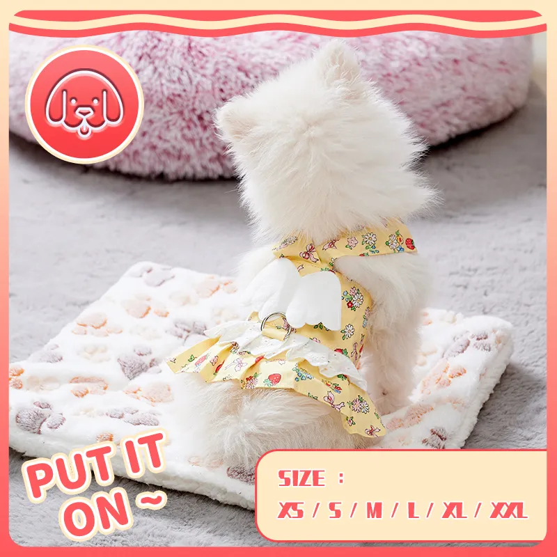 Dog Clothes Harness Dress Leash Set Cute Puppy Dresses With Angel Wings Fashion Outfit Clothing Chihuahua Clothes Pet Harness