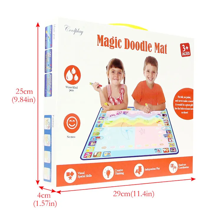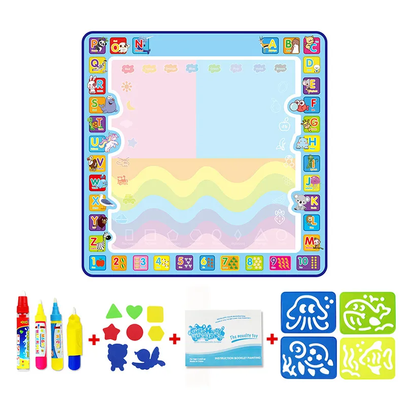 Coolplay 100x100cm Magic Water Drawing Mat Doodle Mat & 4 Drawing Pens & 1 Stamps Set Painting Board Educational Toys for Kids