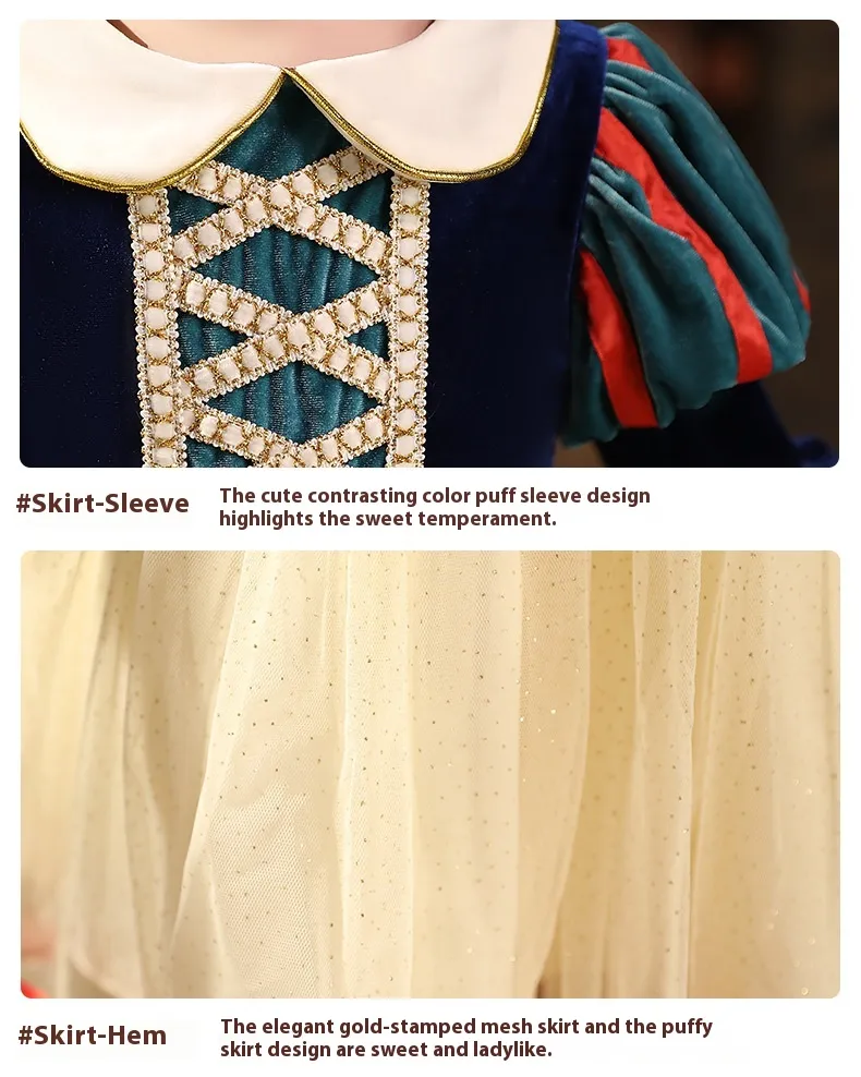 Elegant Princess Dress Design: The dress features classic princess-style details such as ruffles, lace, or tulle, giving it