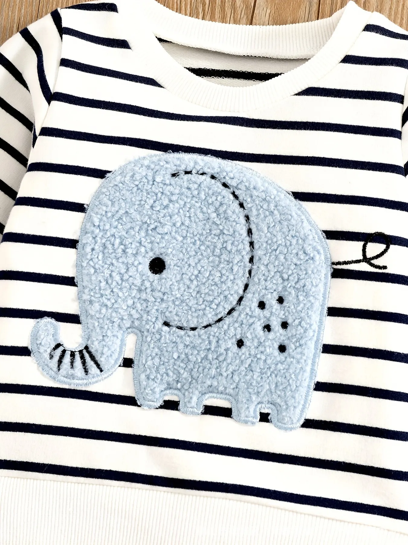 Children's Baby Suit Embroidered Striped Long-sleeved Jeans Suit – Stylish, Comfortable, and Trendy Outfit for Babies
