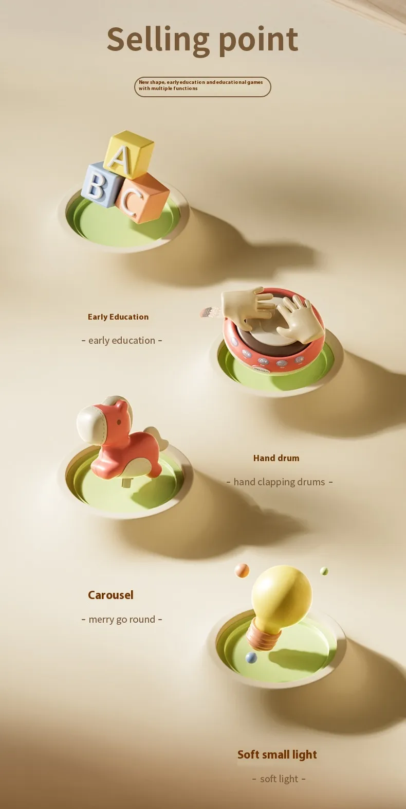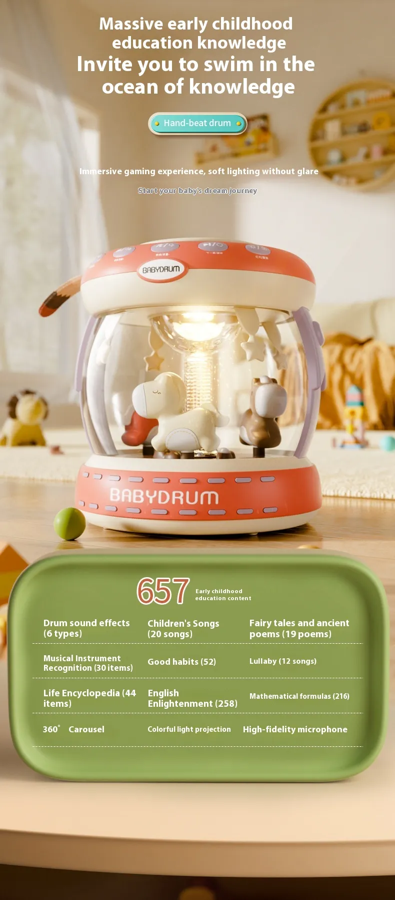 Features: small night lamp, story music, music drum