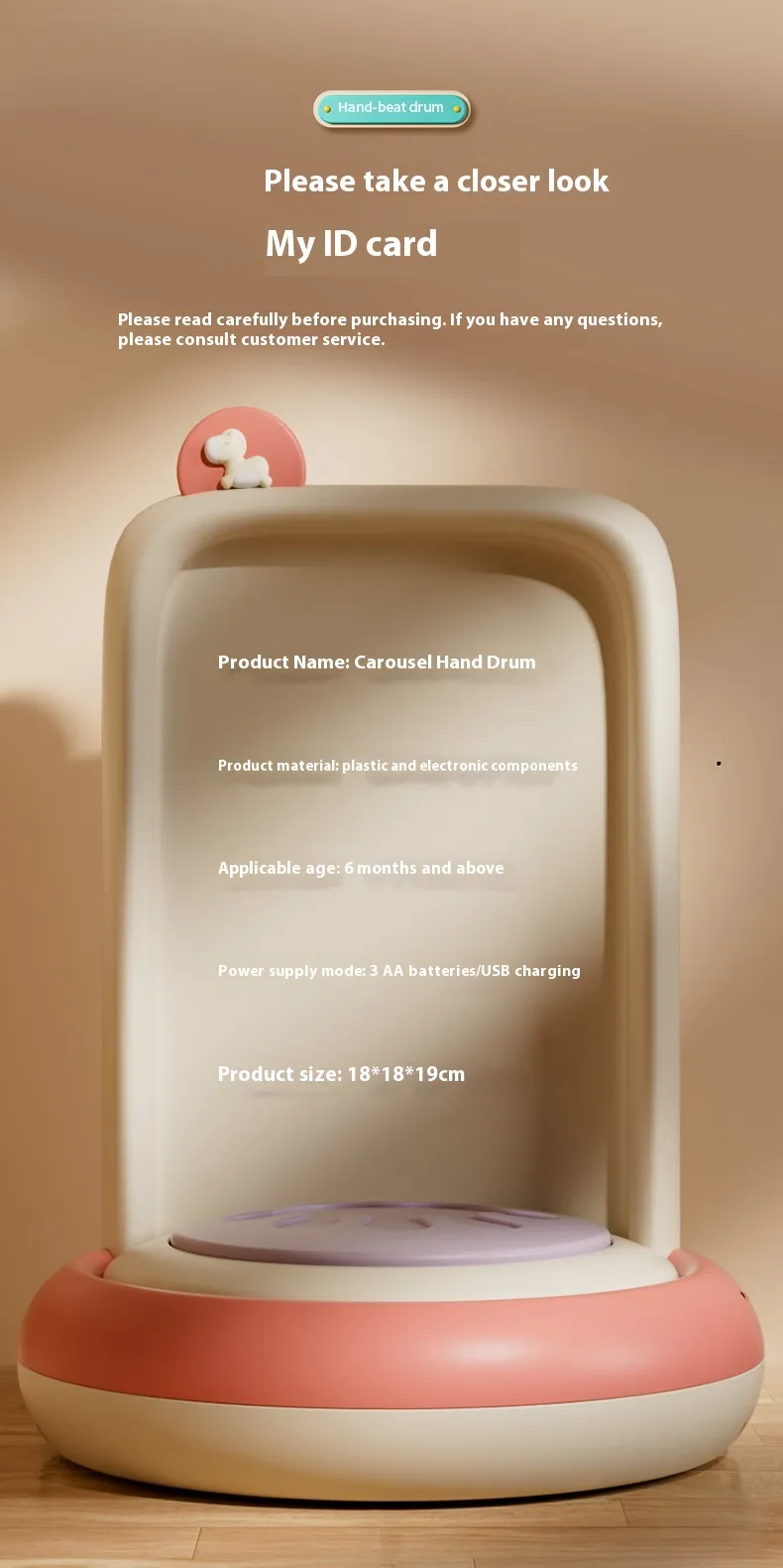 The Children's Carousel Park Hand Drum Toy makes an ideal gift for birthdays, holidays, or any special occasion. It’s a thoughtful and educational gift that provides entertainment while fostering essential developmental skills. Whether for a child interested in music or one who loves to explore different sounds, this hand drum will provide hours of fun and learning.