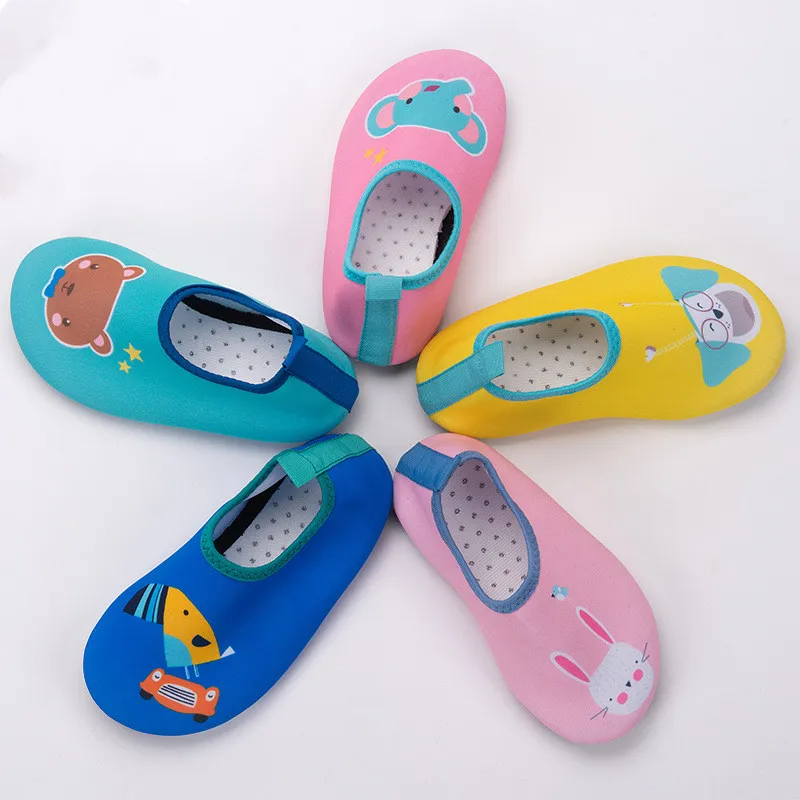 Each pair features fun and colorful cartoon designs that kids will love, encouraging them to wear their swimming shoes with enthusiasm.