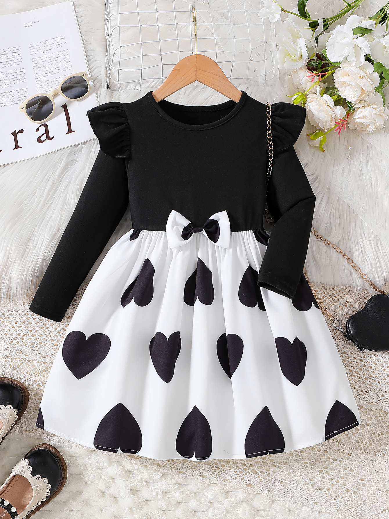 Made from high-quality cotton and polyester blends, this dress is soft on your child's skin, providing a comfortable wearing experience. The breathable fabric ensures that your child stays cool during indoor activities or events, while the long sleeves provide extra warmth during cooler seasons.