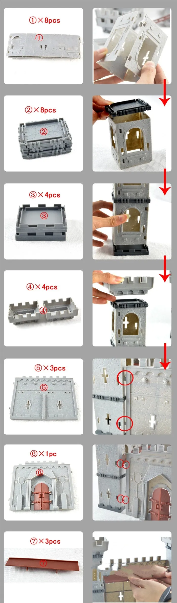 Children'S Diy Self Assembling Toys, Assembling Castle Model, Siege War Battlefield, Ancient Soldier'S Small Castle Suit