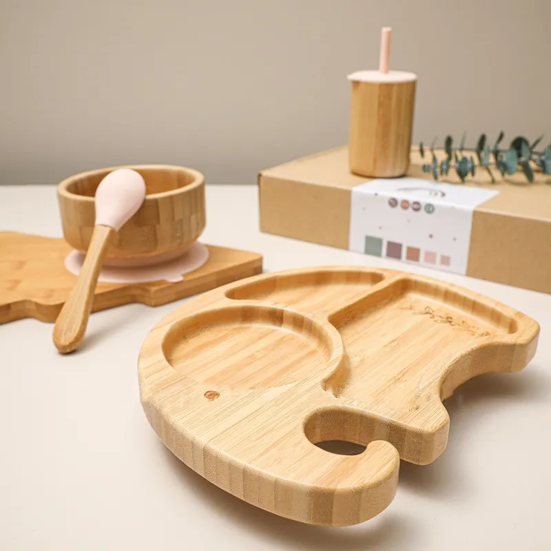 Why Choose the Children's Elephant Suction Cup Dinner Plate Round Bamboo Bowl Four-Piece Set?