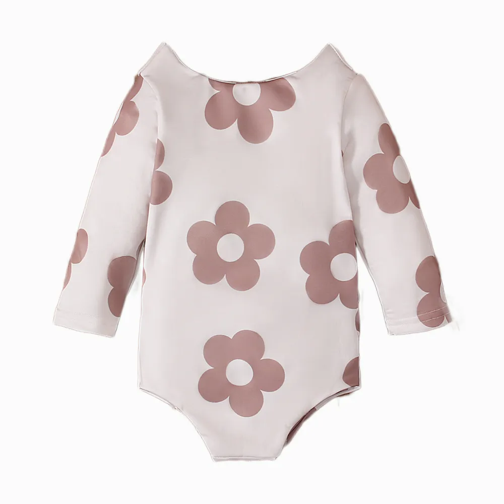 Girls’ Long Sleeve Floral Triangle Swimsuit – European & American-Inspired Spring and Autumn Swimwear for NZ Kids