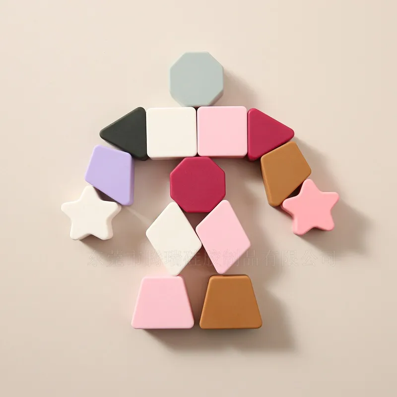 Color: Silicone geometric puzzle mixed color yellowish brown, silicone geometric puzzle mixed color pink