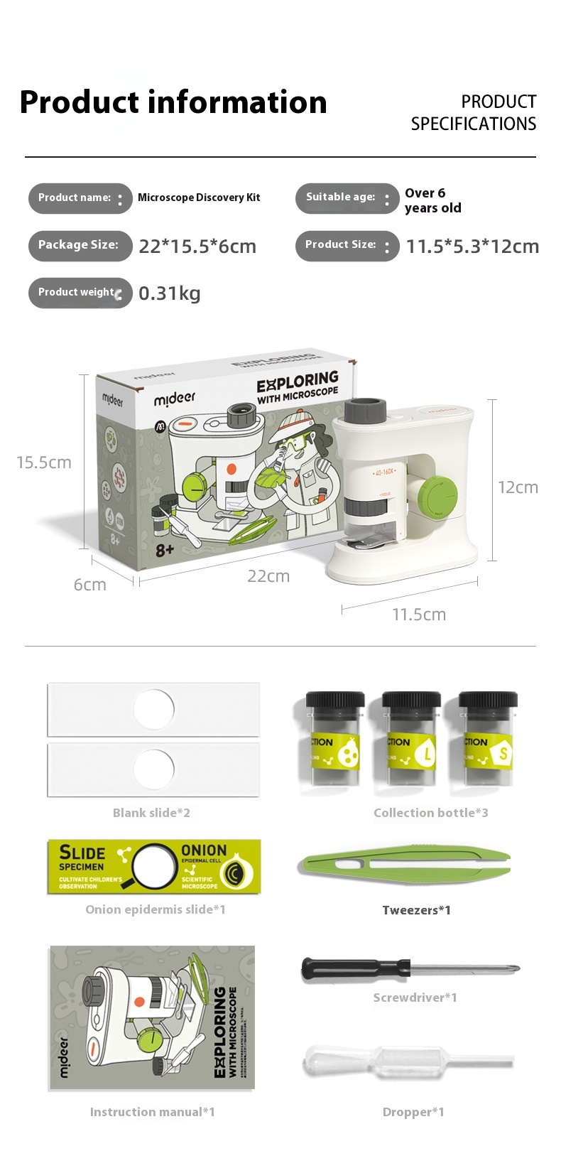 - High-Definition Imaging: Equipped with an HD lens to deliver clear and detailed magnification, allowing children to closely examine specimens and experience the microscopic world like never before.