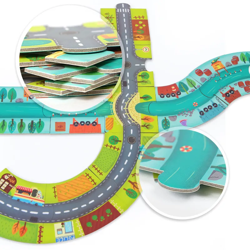 Features: 38 puzzle pieces, 2 small cars and 2 small boats