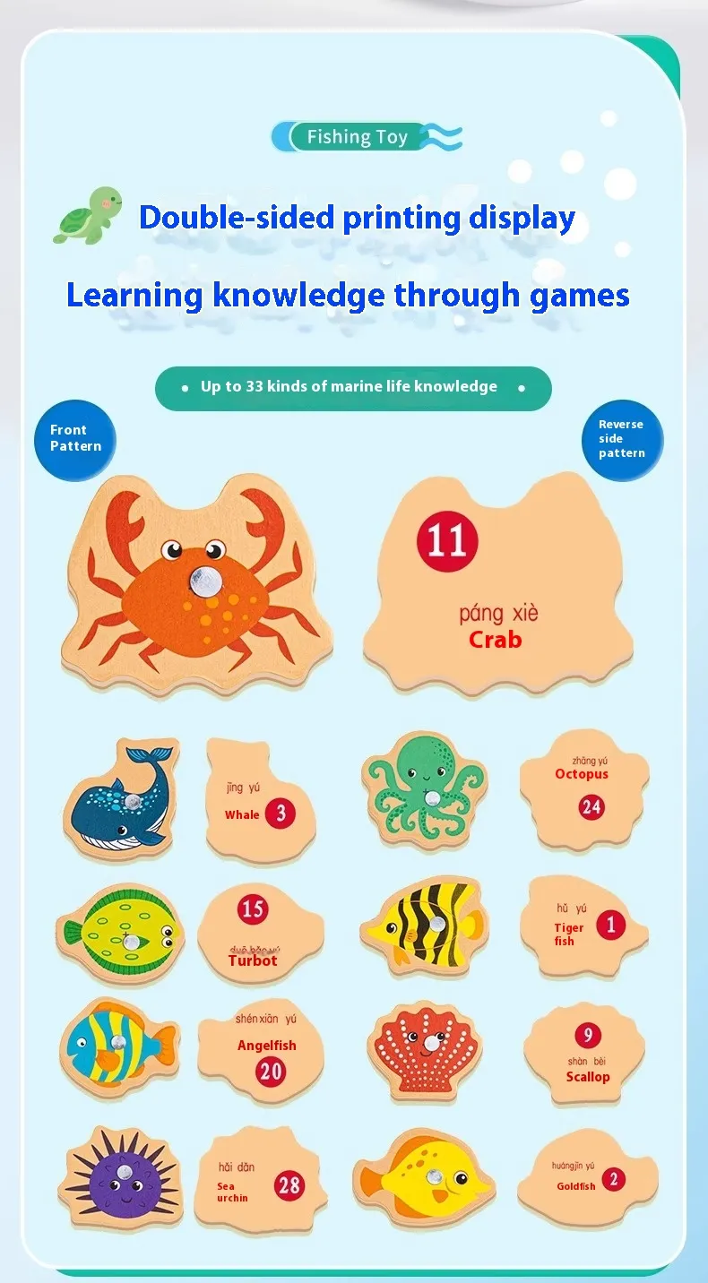 problem-solving abilities. As your child catches the fish with the magnetic rod, they learn how to control their movements and improve their