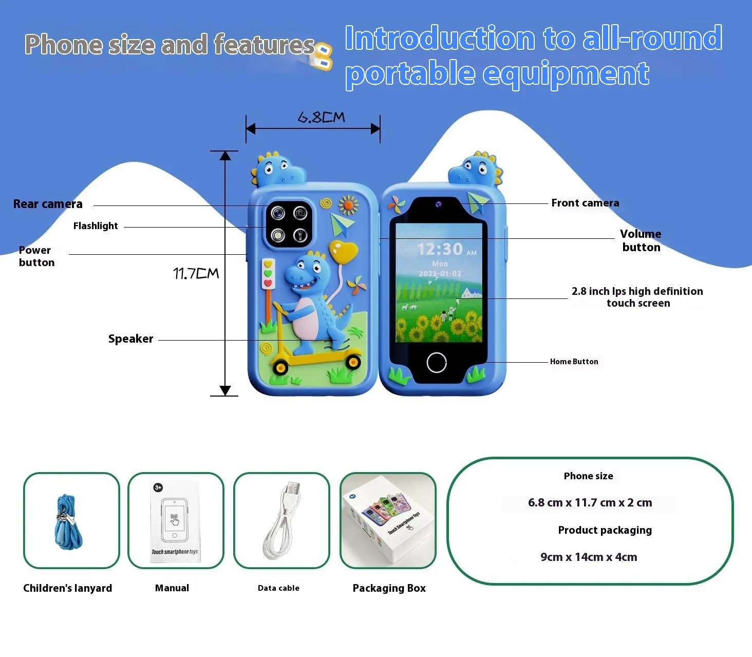 cable lanyard instruction box, Blue children's mobile phone silicone case data cable lanyard instruction box, Green children's mobile phone