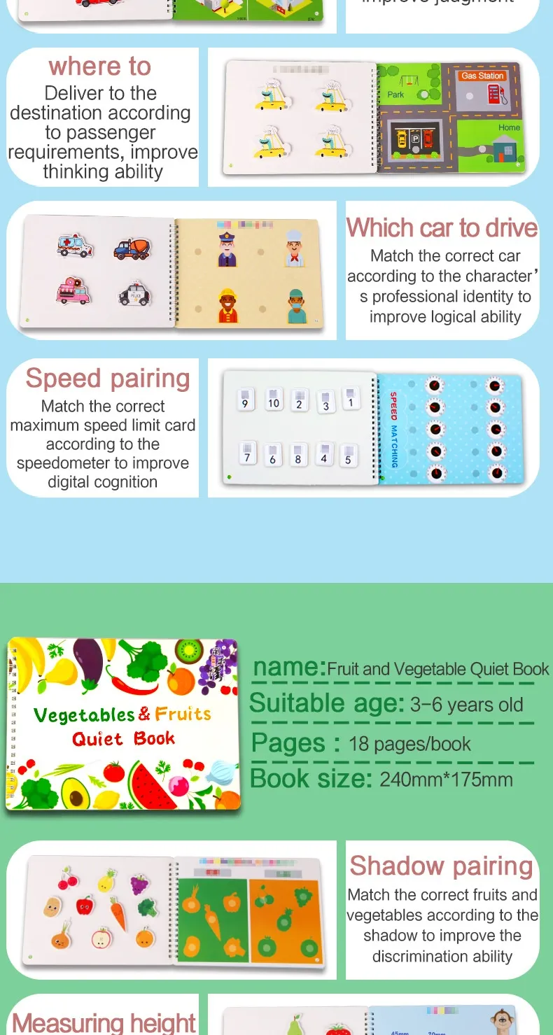 Whether you're looking for a learning tool for at-home use, during travel, or as a gift, the Children's Quiet Book Baby Literacy Card provides hours of educational fun, helping children improve language skills, fine motor skills, and more!