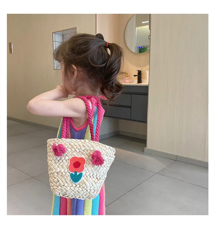 Children's Straw Handmade Knitted Messenger Bag