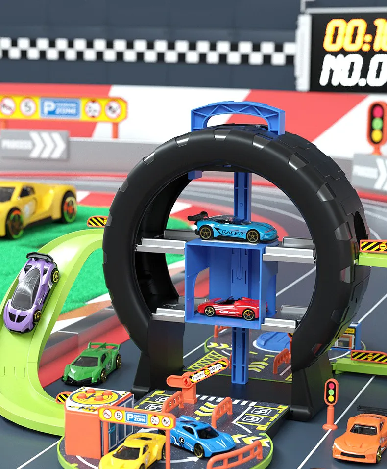 Children can use these cars to drive through the tire track parking lot, race, or engage in imaginative play scenarios. The robust design of the cars means they can be used for years of play without easily wearing out, making this toy set a great investment.
