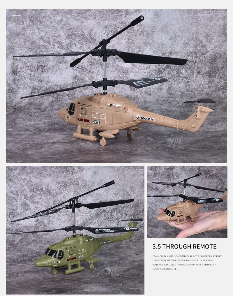 Color: Army Green helicopter, black helicopter, Milky White helicopter, shark helicopter