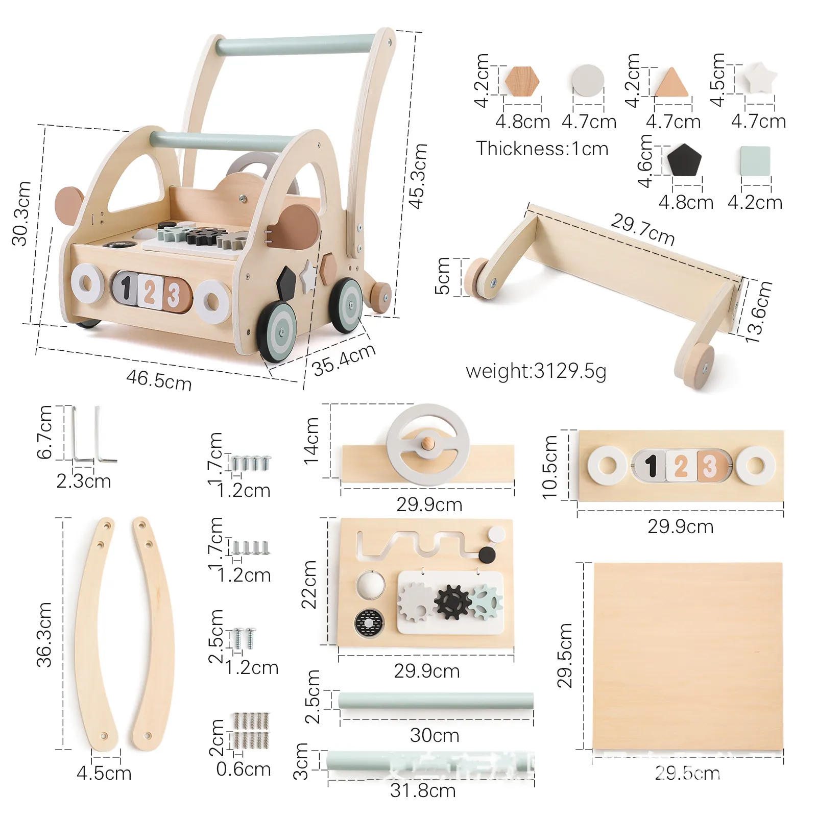 The Children's Wooden Puzzle Multi-Functional Walker is a thoughtfully designed developmental toy that offers endless fun while helping toddlers build essential motor skills. Combining a sturdy walker with engaging puzzles and activities, this multi-functional toy is perfect for encouraging exploration, creativity, and physical development.