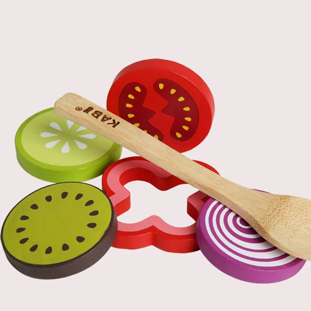 - Wooden food items (vegetables, fruits, bread, etc.)