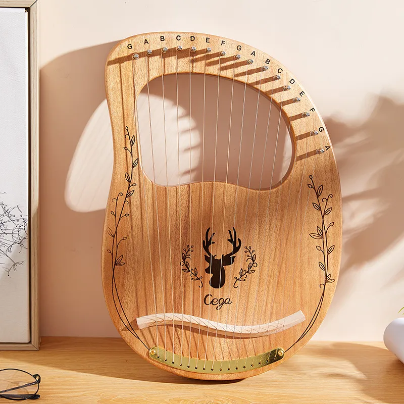 The Chinese table harp, also known as the "Guzheng," is a traditional Chinese stringed instrument with a long history, typically featuring 21 strings. Played by plucking the strings with the fingers or with plectra, the Guzheng produces a wide variety of sounds, from soft and melodic to vibrant and dynamic. Its distinct, resonant tone is often used in Chinese classical music but has also been adapted for contemporary compositions and performances. The table harp is typically placed on a table or a stand and played while seated, offering a captivating musical experience that captures the essence of Chinese musical tradition.
