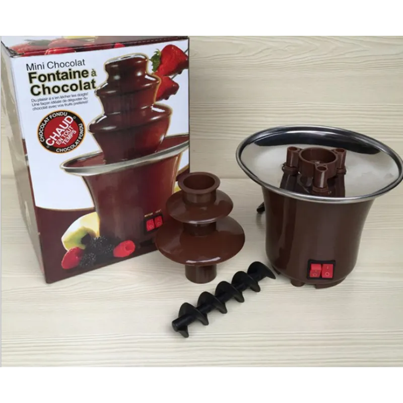 flow through create the effect of a chocolate waterfall. Usually, some types of fruit, marshmallows, etc. can be used to extract chocolate,
