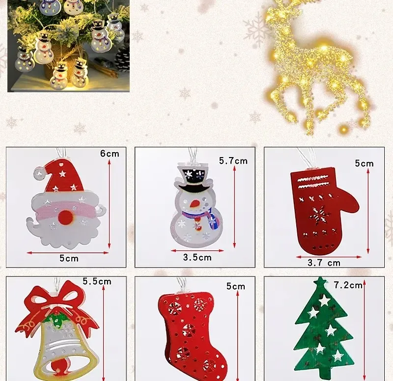Create a festive and magical atmosphere with the Christmas LED Light String, featuring delightful Santa Claus, Elk, and Snowman ornaments. These decorative LED string lights are perfect for adding a cheerful touch to your home this Christmas season and throughout the New Year celebrations. Whether you’re decorating your Christmas tree, mantel, or windows, these lights provide a warm and inviting glow that enhances the holiday spirit.