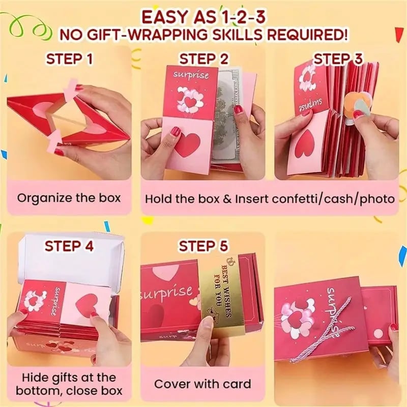 can Insert cash confetti photo greeting cards, in the gap between the box and the box, and place rings, necklaces, bracelets, watches,