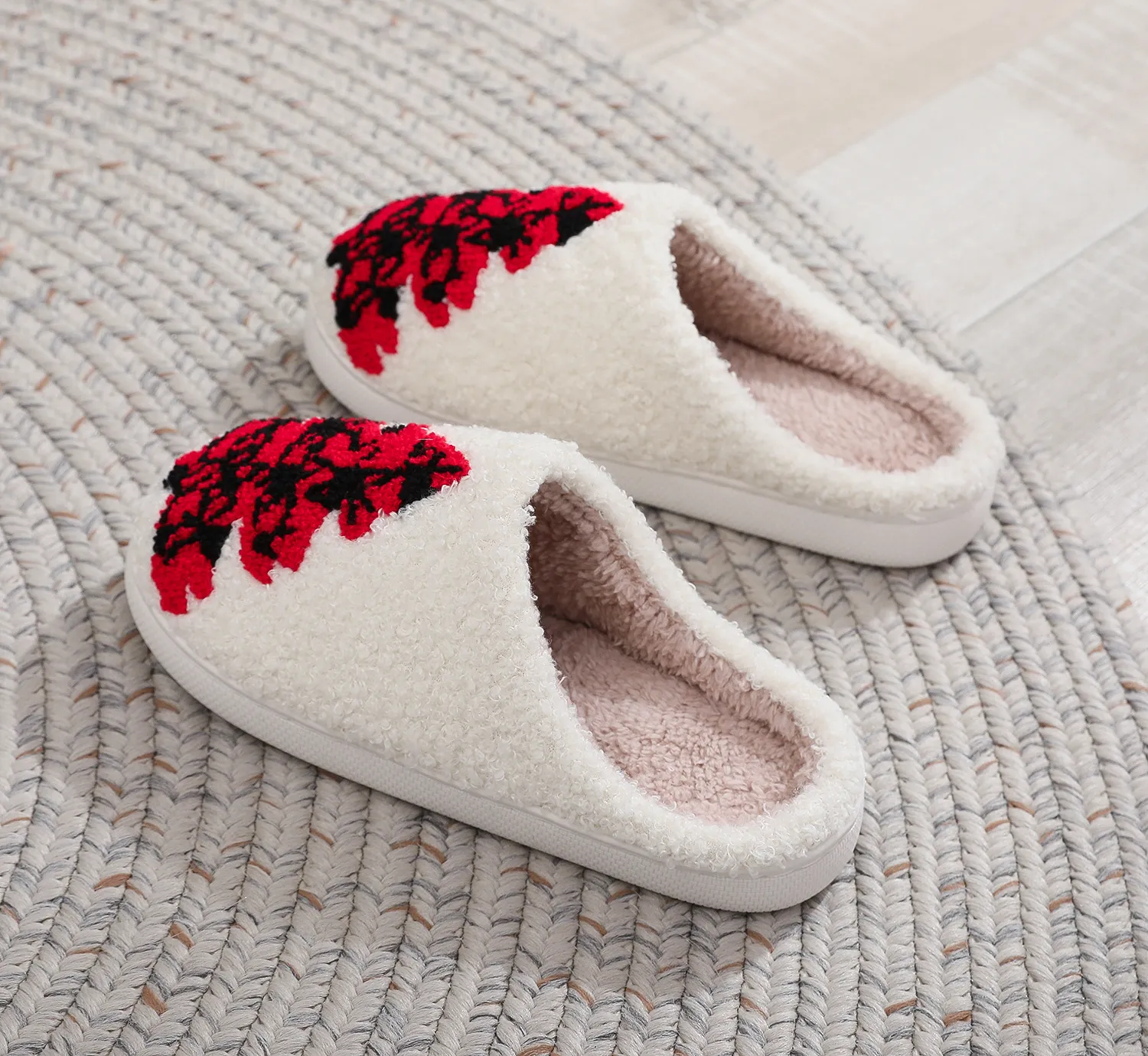These fuzzy slippers bring holiday magic to your feet, featuring a cute and festive Christmas tree design that captures the warmth and joy of the season. The soft, plush interior wraps your feet in cozy comfort, making them perfect for chilly winter days. With their adorable look, these slippers are not only practical but also stylish, adding a holiday touch to your indoor attire.