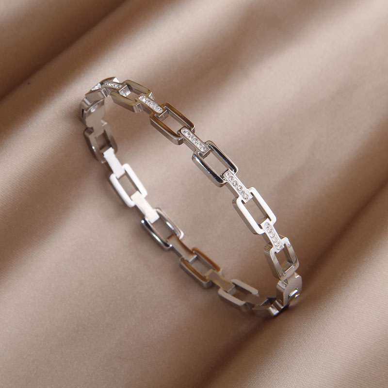 Add a touch of modern elegance and lasting beauty to your jewelry collection with the Classic Stainless Steel Hollow Geometric Charm Bracelet for Women Crystal Bracelets Rust-proof Wrist Jewelry Gift Party. Shop now and enjoy a versatile and dazzling accessory.