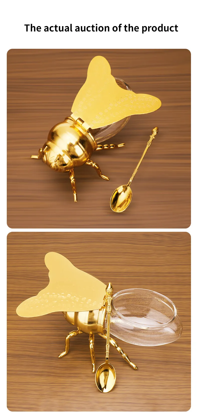 Classical Style Bee Sugar Bowl Seasoning Jar With Spoon Metal Crafts Kitchen Gadgets