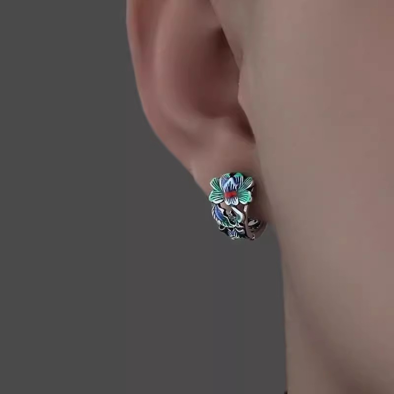 Cloisonne Peony Flower Men's Earrings Fashion Nation