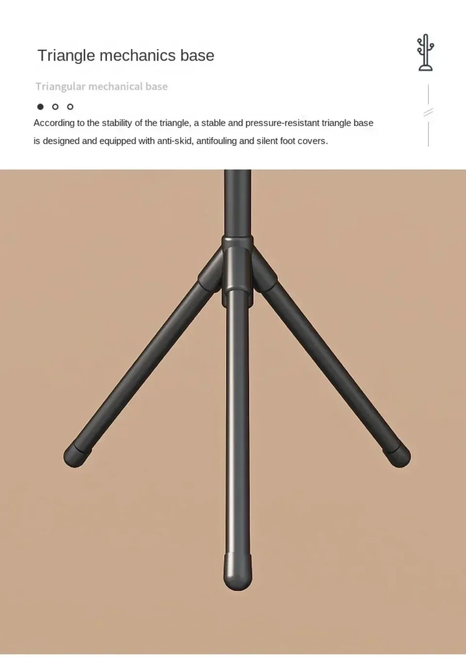 *1. Stable and sturdy: The hanger is made of metal and thickened plastic, with a 3-foot base structure, providing strong load-bearing capacity for your clothing and accessories.*2. High quality design: The hanger hook is smooth and free of burrs, which will not damage the clothes and is more suitable for indoor scenes.