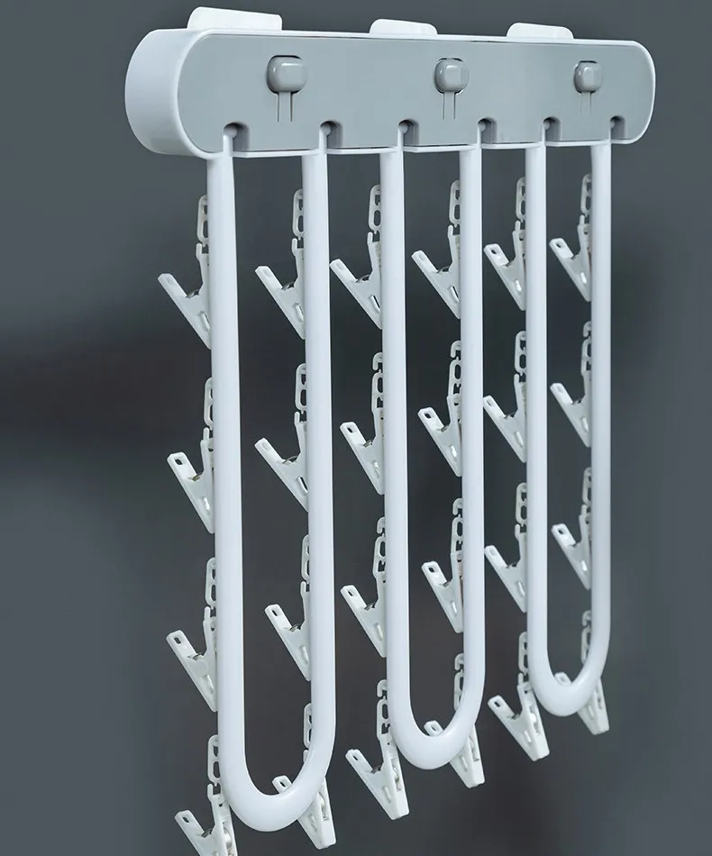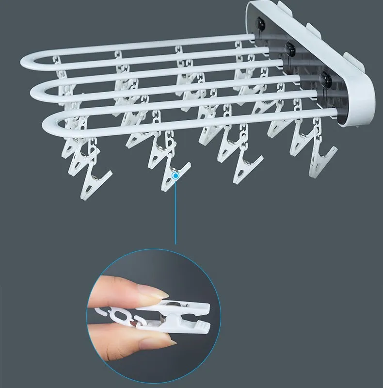 What sets the Clothes Hanger Non-perforated Wall-mounted Rotary Clothes Hanger apart is its easy-to-install, non-perforated design. Forget about drilling holes in your walls; this hanger comes with a reliable adhesive mounting system that ensures it stays firmly in place without causing any damage to your walls. The rotary design allows for easy access to all your garments, making it simple to grab your clothes when you need them. With multiple hooks, you can hang everything from shirts, jackets, and scarves to towels and other accessories.