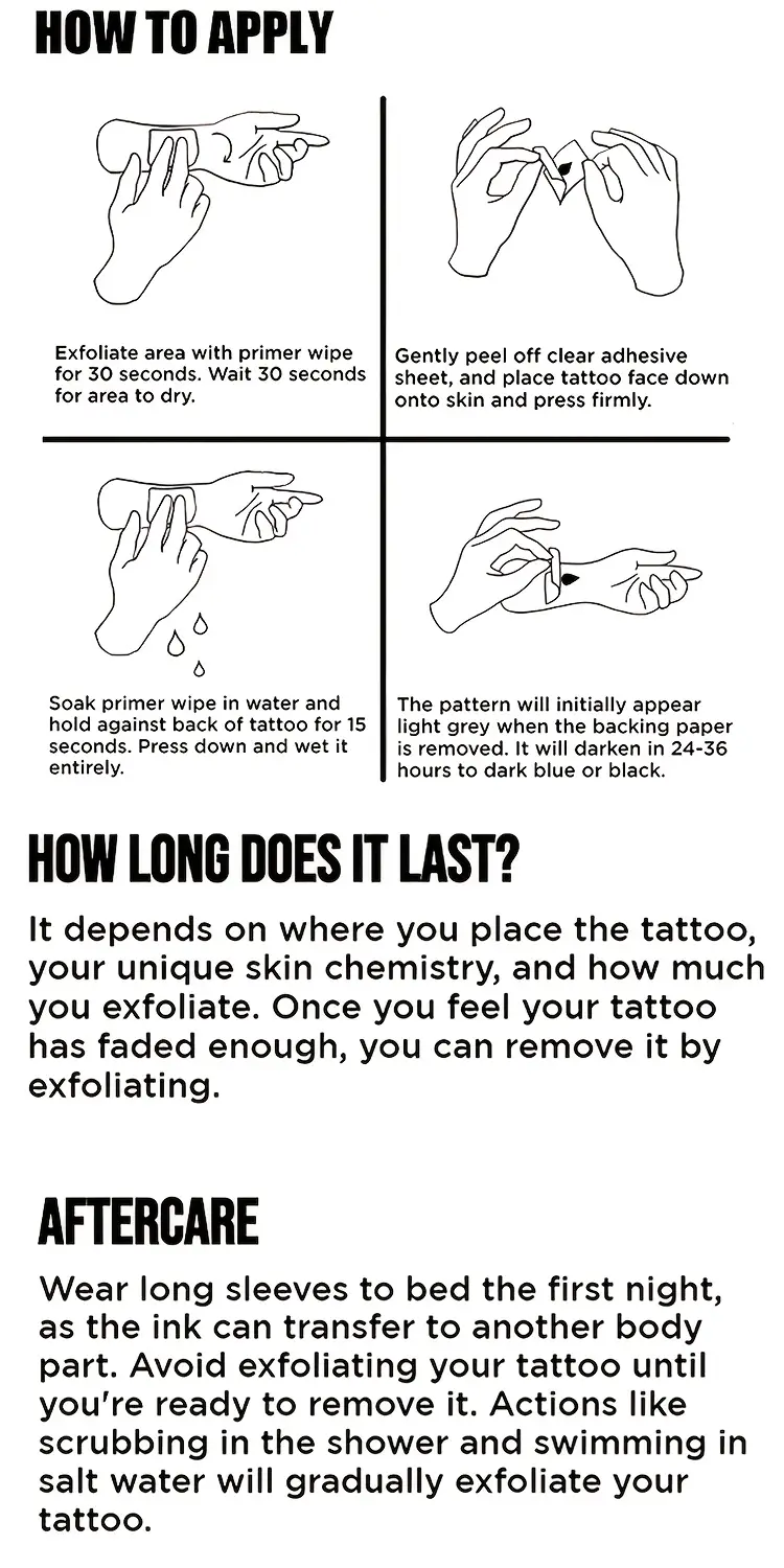 instructions for cleaning, moisturizing, and protecting your tattoo during the healing process.