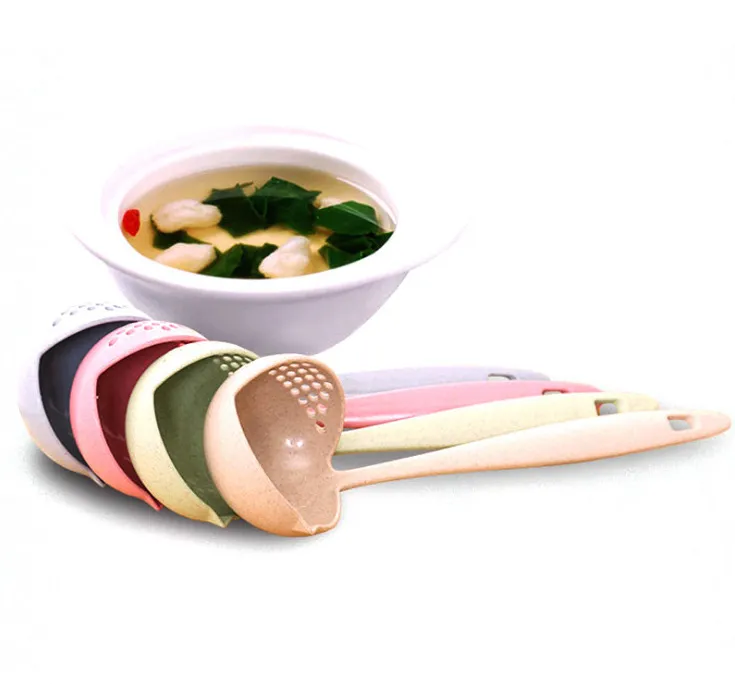 Colander With Wheat Straw Long Handle Dual-purpose Soup Spoon