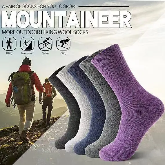 The set of 2 pairs features a versatile, unisex mid-calf design, perfect for both men and women. The combination of the thick wool and cashmere fabric enhances insulation, while the moisture-wicking properties keep your feet dry and fresh, even during extended outdoor activities.