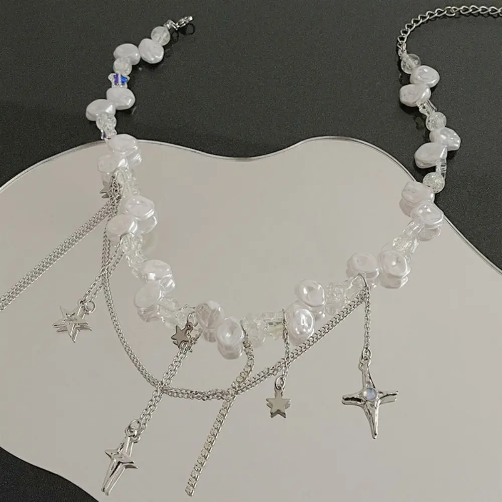 The combination of baroque pearls, colorful beads, and star accents makes this necklace a standout piece for fashion-forward individuals.