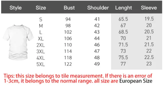 Size: S, M, L, XL, 2XL, 3XL, 4XL, 5XL