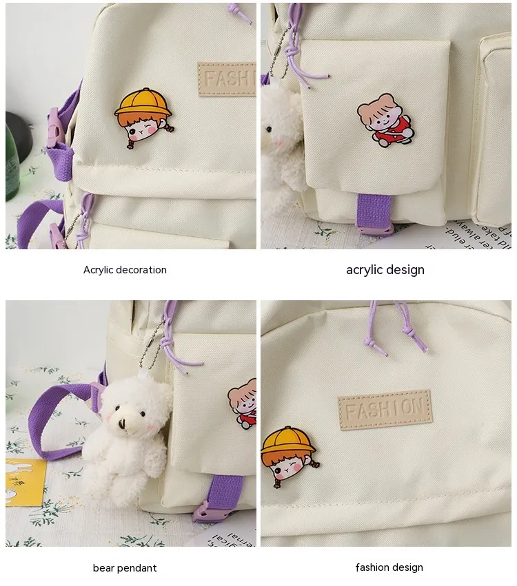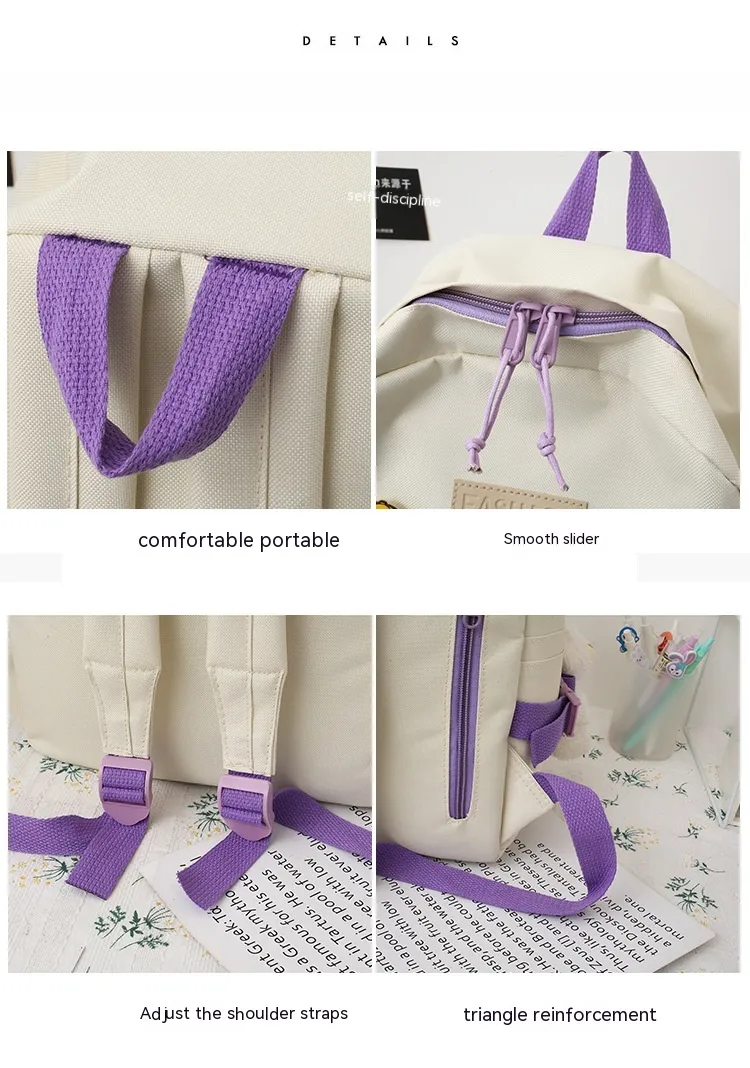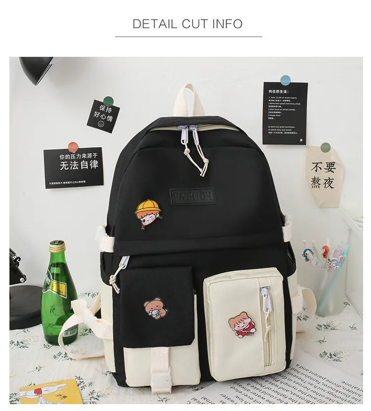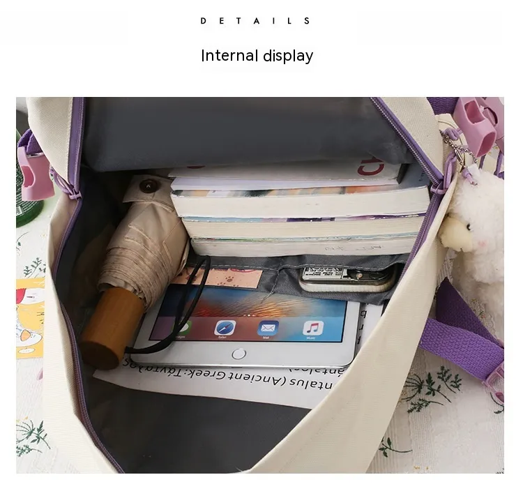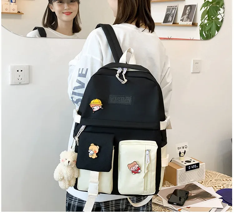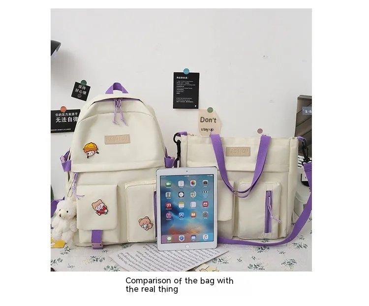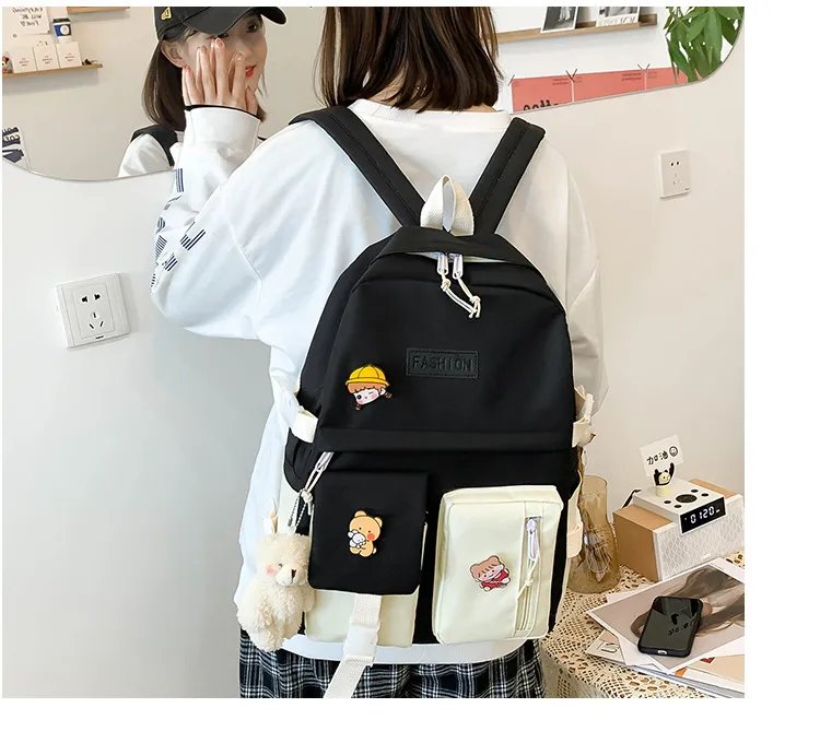 College Students' Five-Piece Contrast Color Canvas Backpack – Stylish and Functional for Everyday Use
