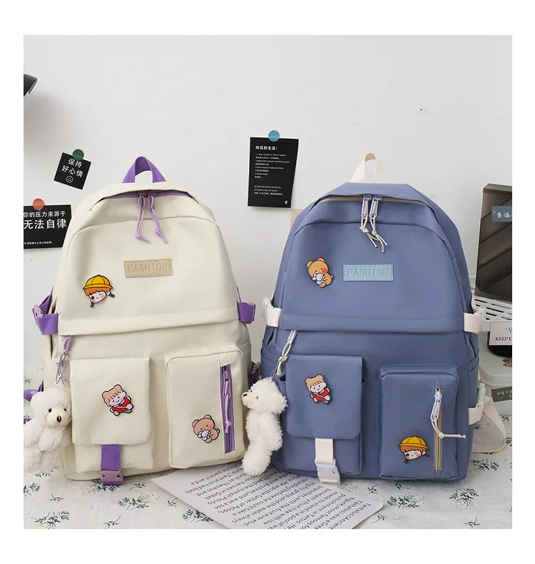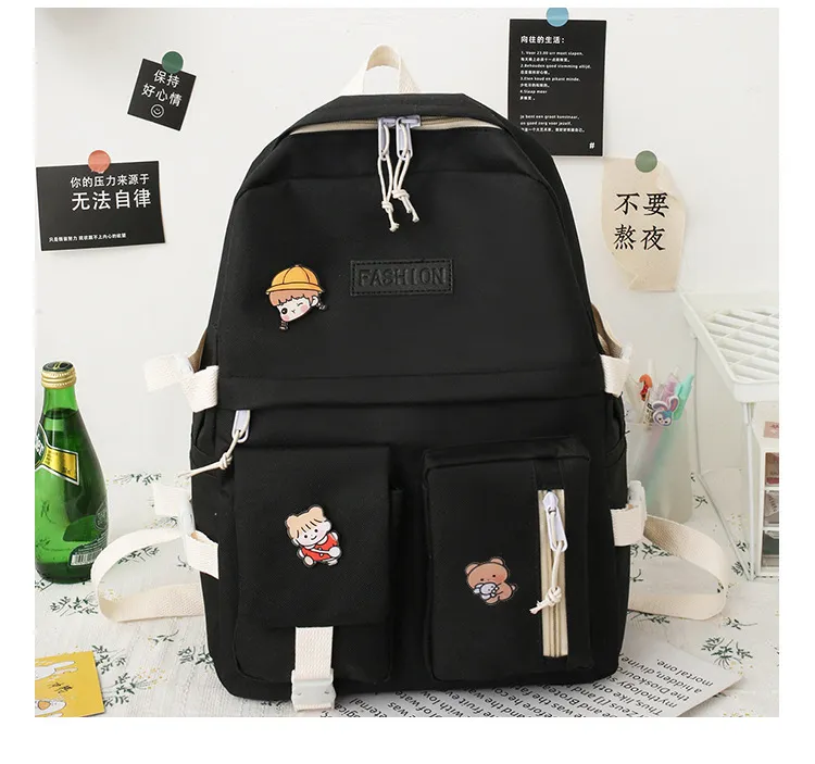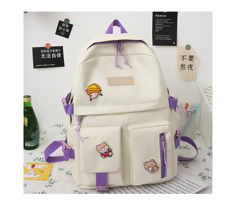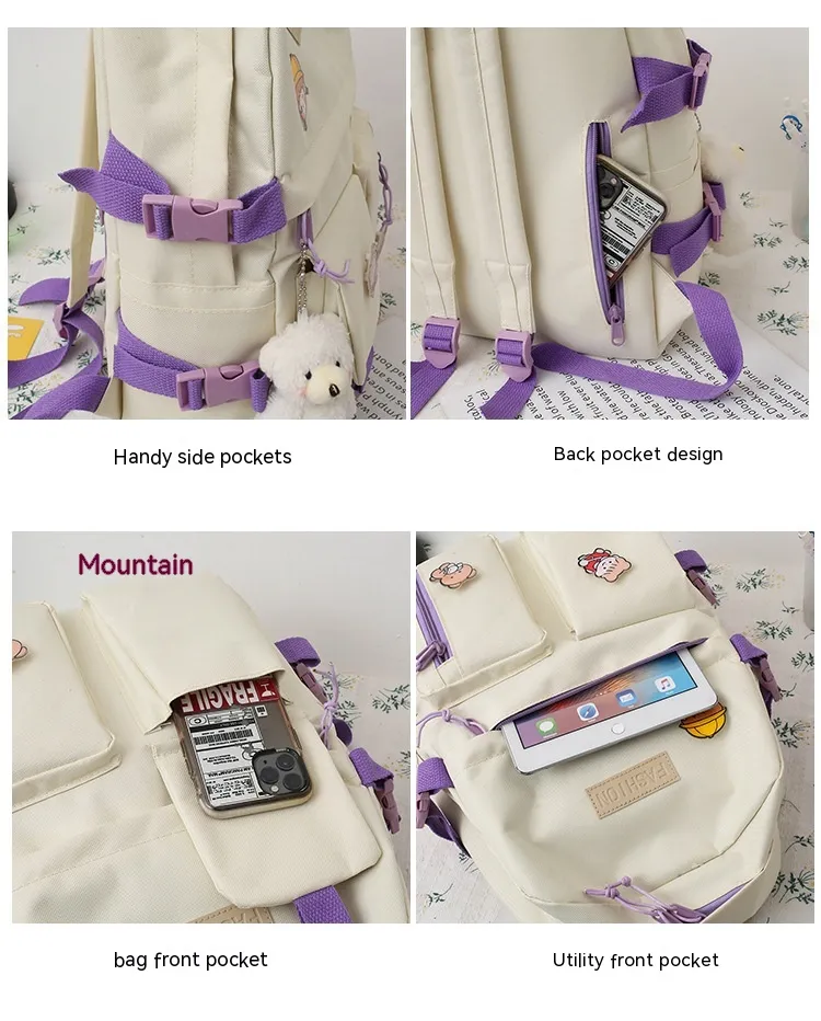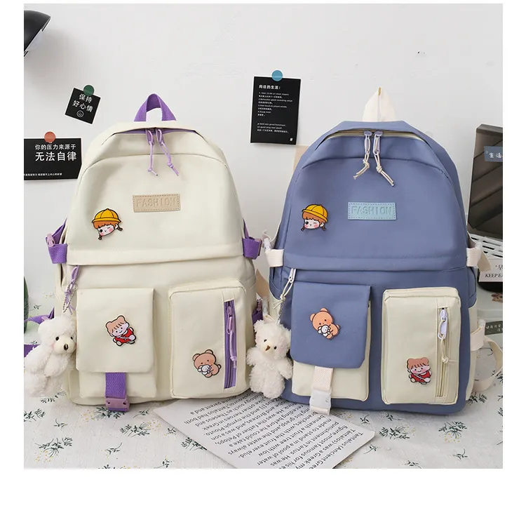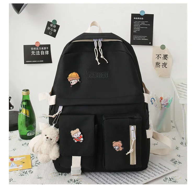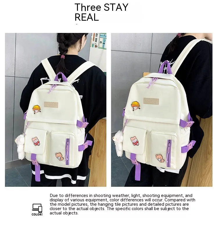 College Students' Five-Piece Contrast Color Canvas Backpack – Stylish and Functional for Everyday Use