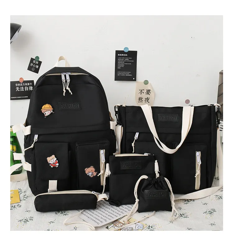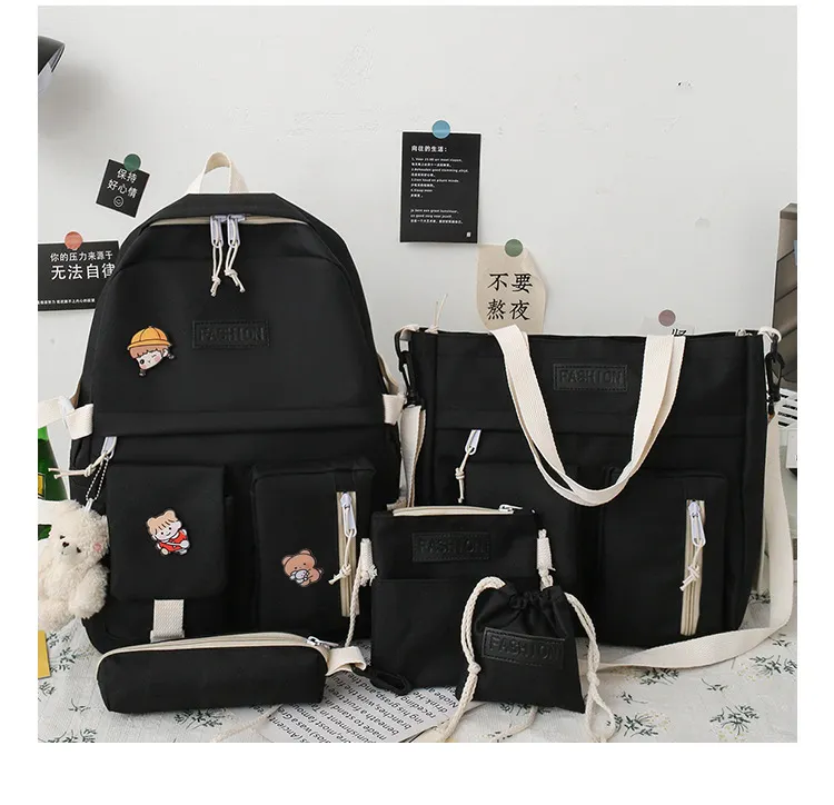 Stay organized, stylish, and prepared with the College Students' Five-Piece Contrast Color Canvas School Bag. Perfect for students and anyone who values functionality and fashion, this set is a must-have for busy, on-the-go lifestyles. Make a statement while staying practical with this trendy and durable bag collection.