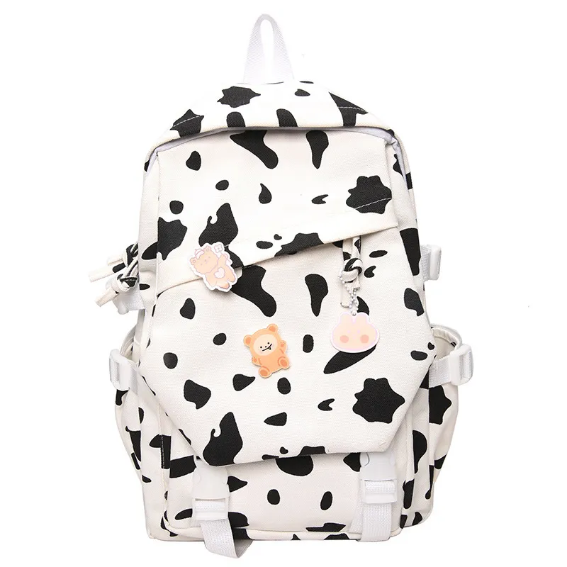 Add a touch of whimsy to your everyday routine with the College Style Cow Pattern Soft Girl Backpack. Designed with a charming cow print and